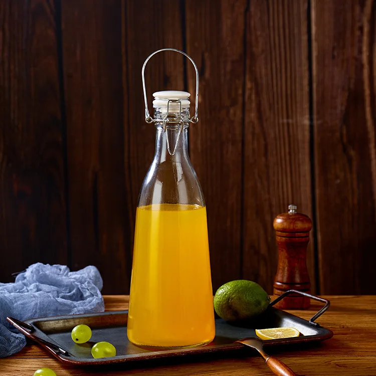 Swing Top Beverage Bottles: Durable swing bottle with clasp-style flip-top lids for secure sealing of juice bottles or fruit wine.